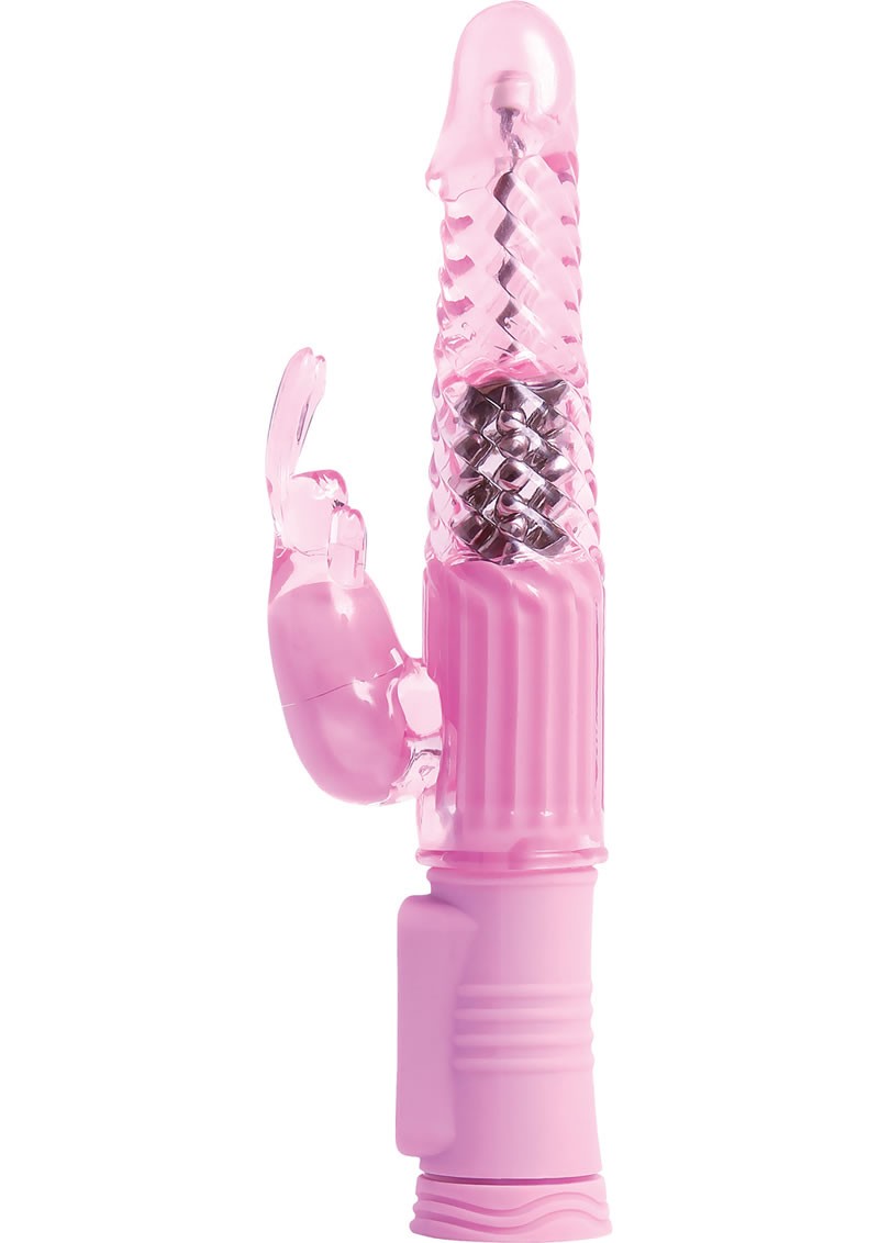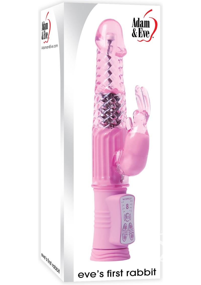 New to the world of rabbit vibrators? Adam & Eve's got the perfect introduction: Eve's First Rabbit! Made of flexible TPR, it boasts all the features of luxury rabbits multiple duo-directional rotation settings, 4 shaft rotation speeds, and 8 clitoral vibration functions. Its slimmer, sleeker size makes it ideal for first timers.