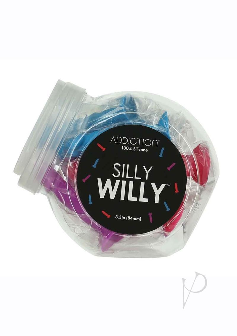 These miniature dildos from Addiction now come in fun size! The adorable peckers stand at 3.3 inches tall and come equipped with all the same amazing features the Addiction line is known for! Although small in size, the dildos feature extreme suction cup bases, super smooth silicone material and a realistic design for your pleasure! Available in 3 eye-catching brightly coloured options, get your hands on your Silly Willy display bowl today!