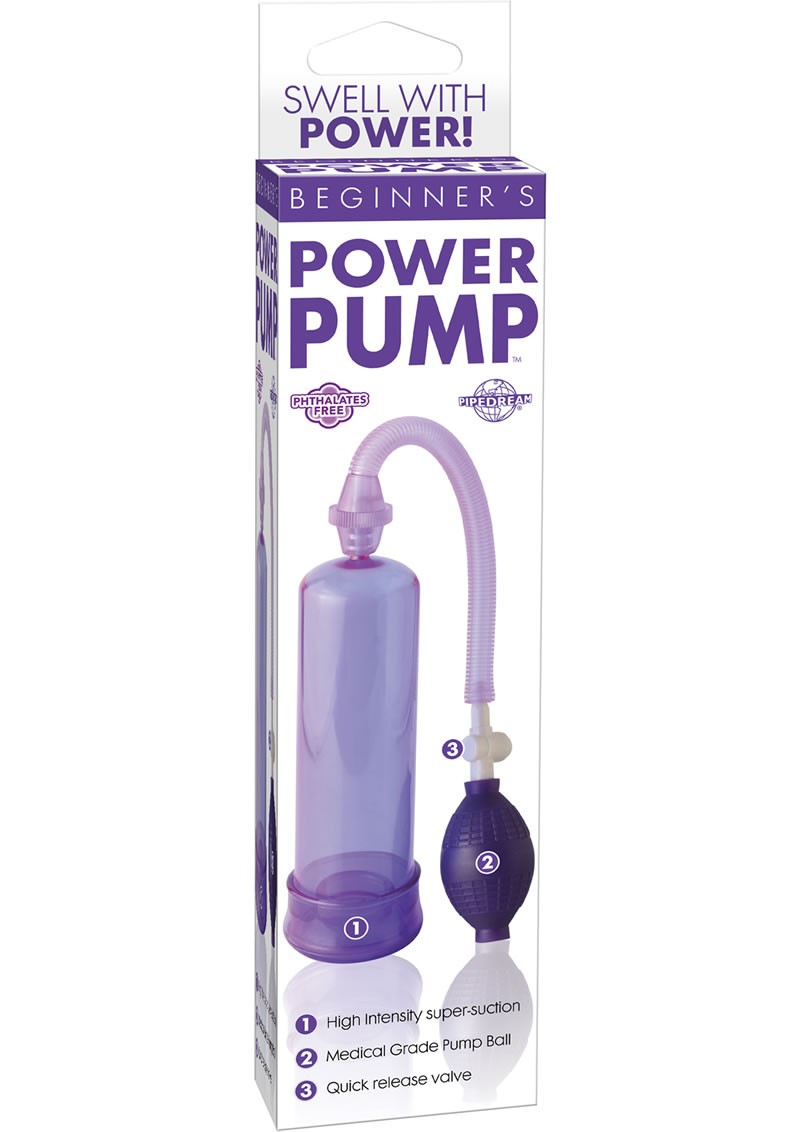 The Beginners Power Pump will give you the size and confidence youve always dreamt about without any harmful side effects. With each squeeze of the medical-style pump ball, your pleasure rod will swell with power. Once you penetrate the smooth, flexible PVC opening, youll quickly discover throbbing, rock-hard erections that feel great and last and lastwith no midway performance letdowns! Beware of imitationsonly this potent pump can deliver results that truly satisfy!