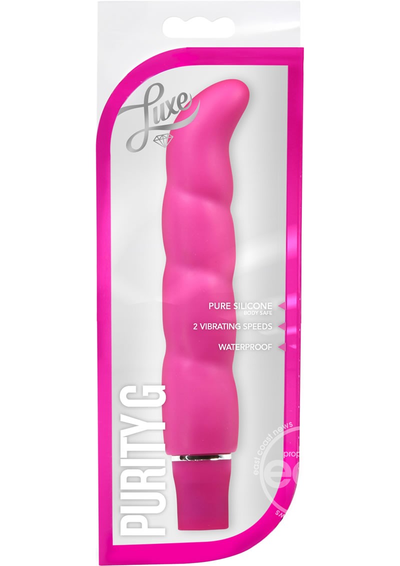 Luxe Purity G Spot Vibrator's seductive shape expresses the spirit of Blush Novelties Luxe line. Gorgeous to behold and sensuous to the touch with a smooth satin finish