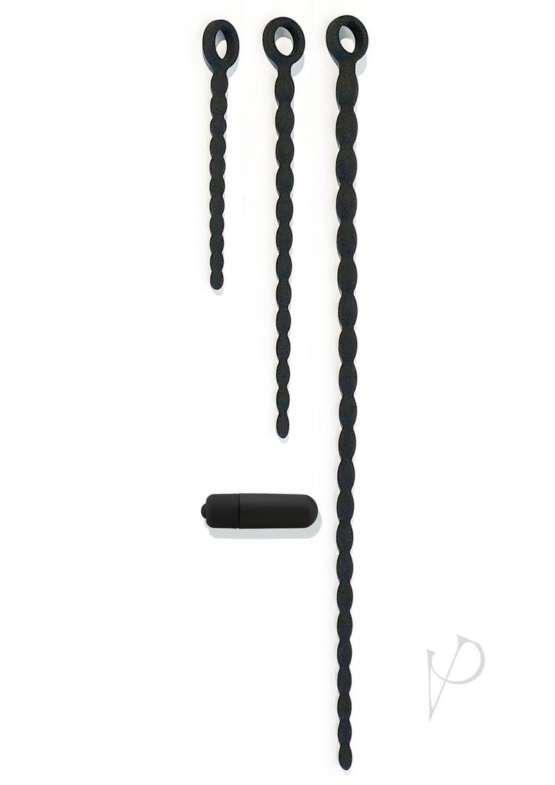 This silicone training kit, includes three sounding rods in graduated sizes. These beaded flexible rods bend with the body, sliding down your shaft for that unique prostate sensation that you crave.