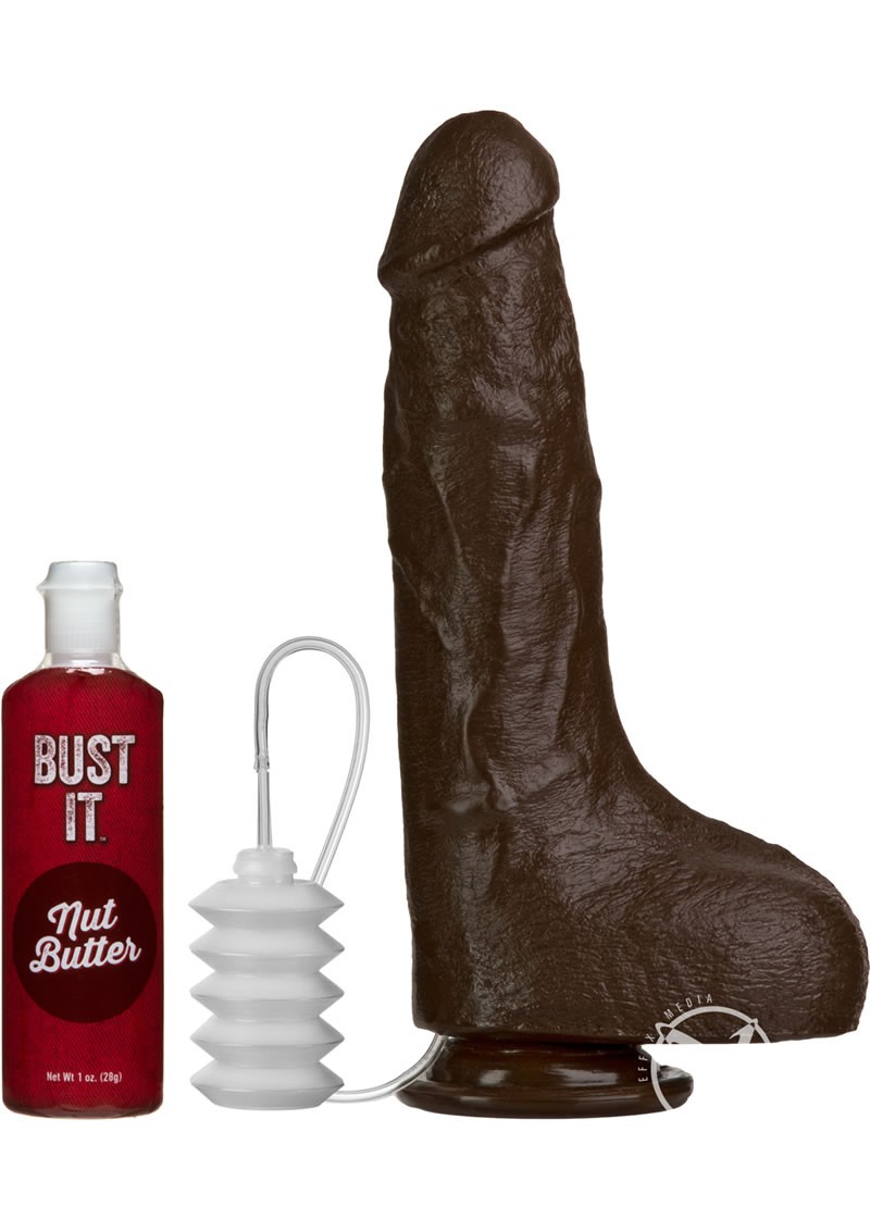 Get ready to Bust it, with this 8.5” big boy! Designed to emulate the look and feel of an erect penis, this Realistic cock even squirts and ejaculates on command; thanks to the creamy cum-like “Nut Butter”! The cock and balls are perfectly textured and anatomically correct, for the most life-like experience on the market. Even the Nut Butter looks and feels like real cum! Features a suction cup base for versatile playtime. Available in White, Brown, and Black, Bust It includes a 1 oz. tube of creamy white Nut Butter. Individual 4 oz. bottles of Nut Butter are also available for purchase. Phthalate-free and Body-safe. Proudly Made in America.