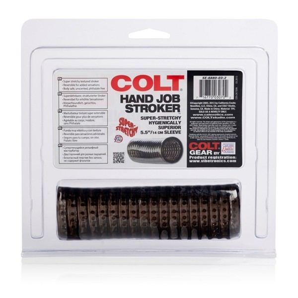 CalExotics Colt Hand Job Stroker has 324 nubbies that will stimulate your cock each and every time you stroke yourself! The super-stretchy hygienically superior Silicone sleeve is is 5½' long.