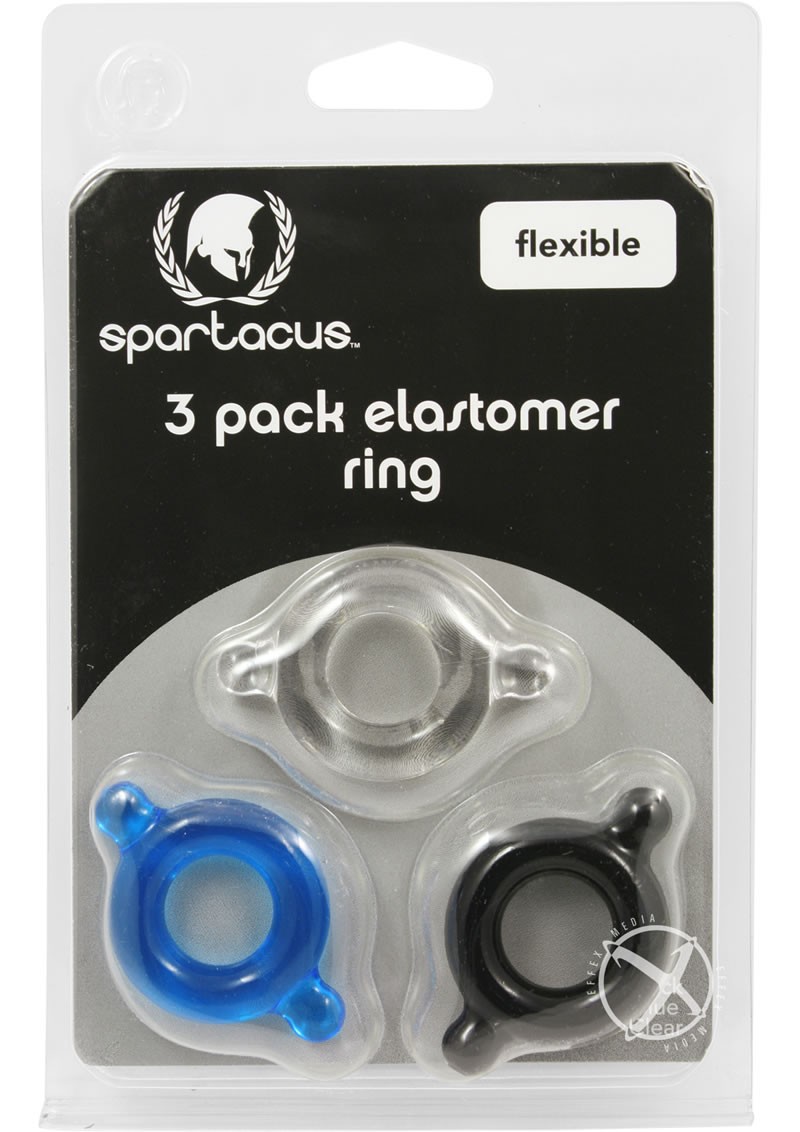 For a cock ring fit that?s snug and comfortable, it?s hard to do better than elastomer. Because of its flexibility, elastomer is the ideal material for cock ring beginners. Spartacus elastomer is compatible with all silicone and water-based lubes. Now elastomer is compatible with your changing moods, too: try a three-pack and triple your pleasure.