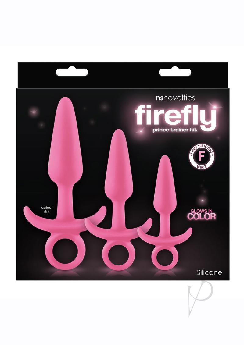 Experience new thrills with the Prince Trainer Kit from Firefly. Includes three sexy and stylish, glow-in-the-dark plugs made of firm, smooth silicone for a rocking good time! Assorted sizes. Suitable with all lubricants.