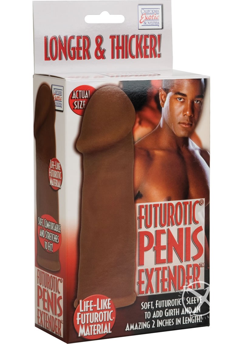 Comfortable, soft, stretch-to-fit life-like extension adds girth and a full 2"/ 5 cm in length. Futurotic (TPR). 5.5"x 1.5"/ 14 cm x 4 cm.