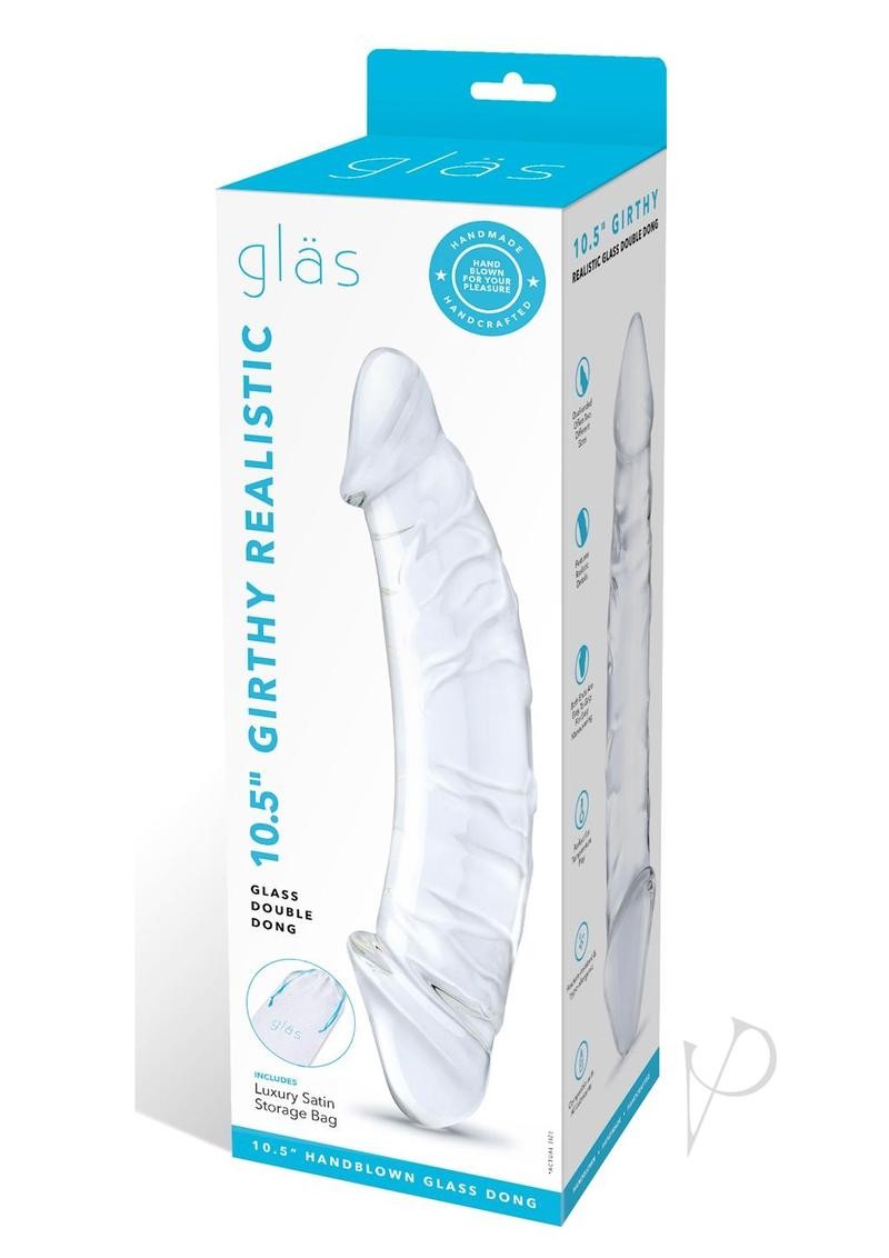 Get more thrills during partnered or solo play with a double-ended toy that satisfies sexual appetites of all sizes. Featuring an elongated size of 10.5 inches, this dong is curved and also features a shaft that gradually widens until reaching the larger, lifelike bulbous tip. Veins along the shaft enhance the feel of each thrust.