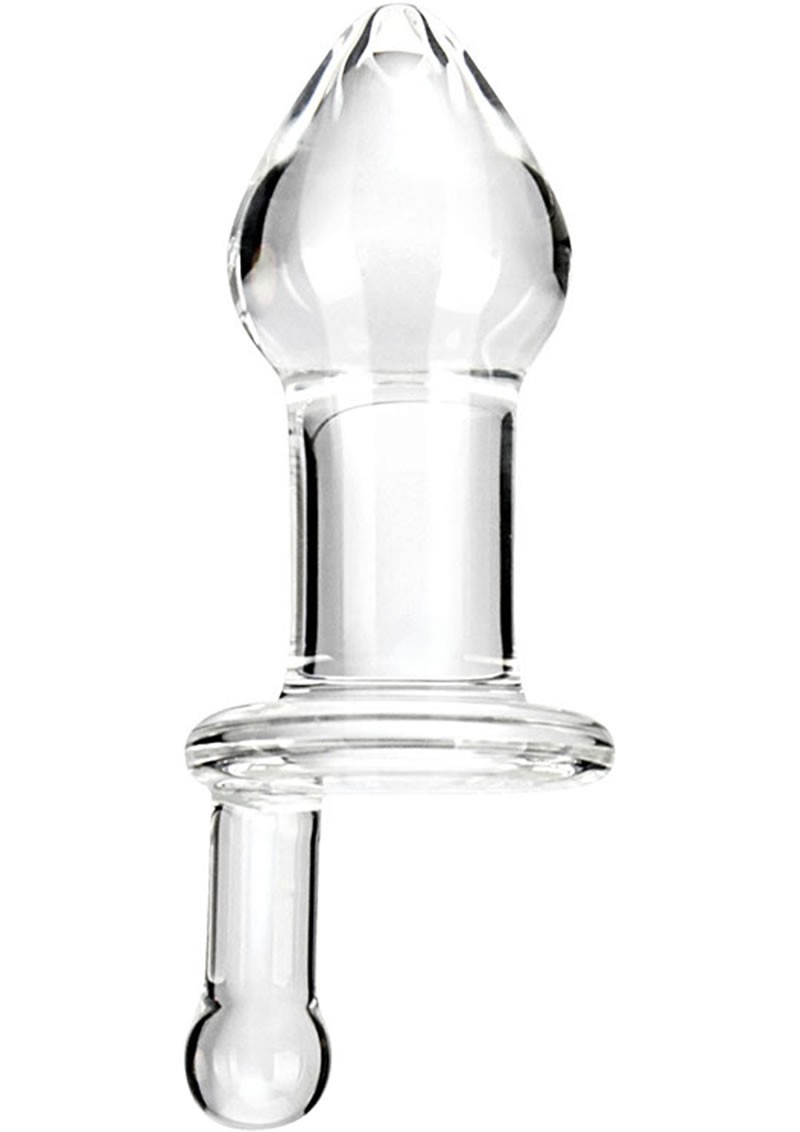 Able to be spun, twisted and turned while inserted, the Juicer's potential for toe-curling sensation is practically endless. This unique anal or vaginal toy has a 1.5 inch wide bulb at its widest and slimmed down to a point of extra smooth firmness at the tip, the Juicer's shape comfortably yet inexorably widens the vaginal or anal opening to admit a gradual swell and smooth 1 inch wide neck. The unyielding nature of glass allows for extremely precise control over insertion and manipulation, a feature helped along by a vertical .625 inch wide, 1.5 inch long handle alongside the Juicer's circular 1.875 inch wide base.