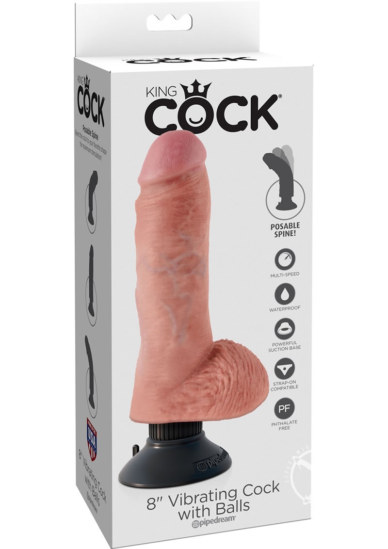 Our new King Cock vibrating dildos are the most realistic American-made vibrating cocks in the world! Every vein, every shaft and every head is handcrafted with exquisite attention to detail to give you the most lifelike experience imagined. The posable shafts allow you to bend the vibe to conform to your bodys contours, while the powerful motor whisks you away. The super-strong removable suction cup bases stick to nearly any flat surface and make all King Cock Vibes harness compatible. You can even take these waterproof vibes into the shower, hot tub or spa and turn bath time into playtime!