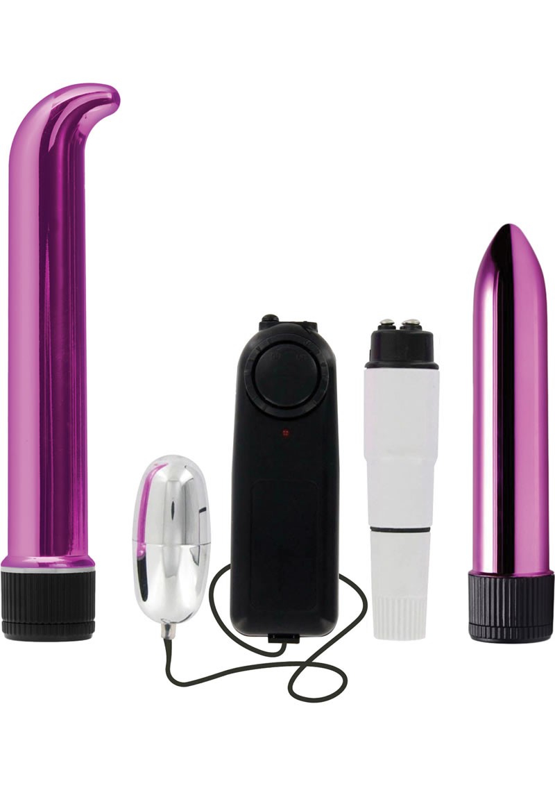 Perfect for discreet and on-the-go pleasure, the Ladies Night Out set includes three great vibes: the Smooth Vibe, a Remote-Controlled Vibrating Egg, and Mini-Massager with four attachments. Each of these vibes is small in size, but they all pack a punch of pleasurable vibrations. Since they are also multi-speed vibes, it is easy to find the perfect speed for you that leads to an amazing climax!