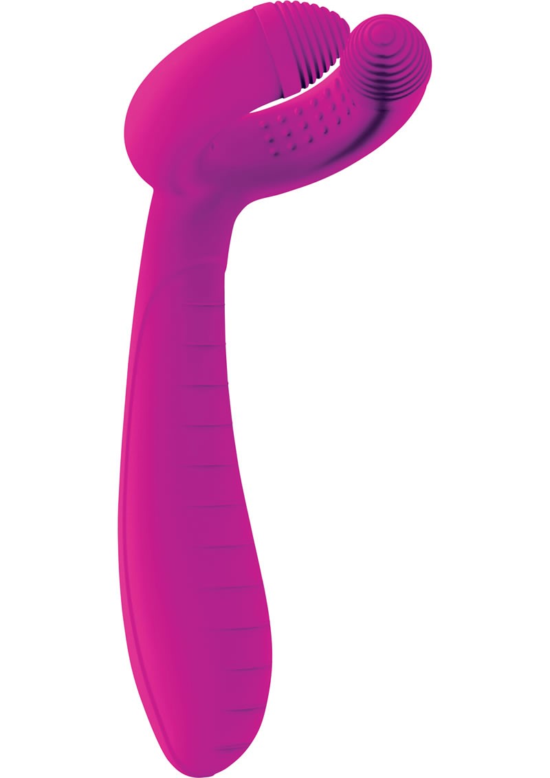 Elegantly and ergonomically designed vibrator for G-spot, clitoral, vaginal and nipple stimulation. Made of the highest medical grade silicone; technologically advanced, yet simple to use, with a two-button interface that allows full control of its three points of vibration. Rechargeable, whisper-quiet.