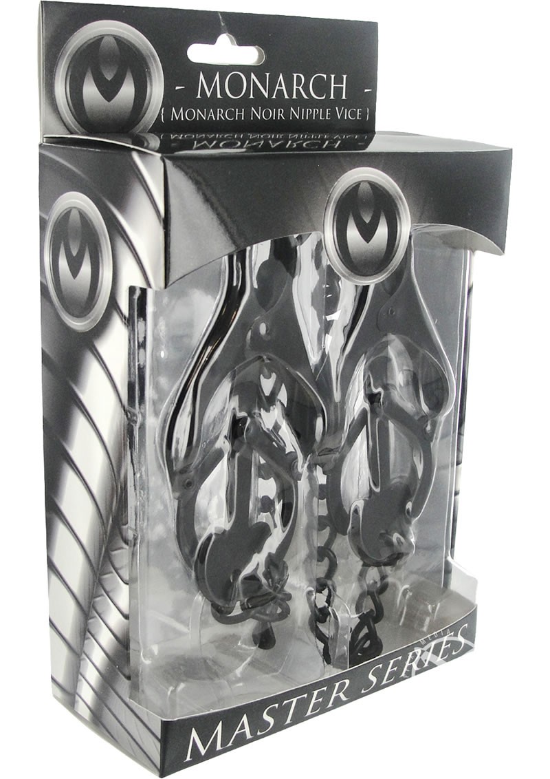 A timeless classic. The Monarch Nipple Vice provides a light initial sensation...until the chain is pulled. They become increasingly harsh as more tension is added to the chain. The clover-style mechanism gives the Monarch a tight and unyeilding grip on sensitive flesh. Ideal for solo play or with the one you want to dominate.