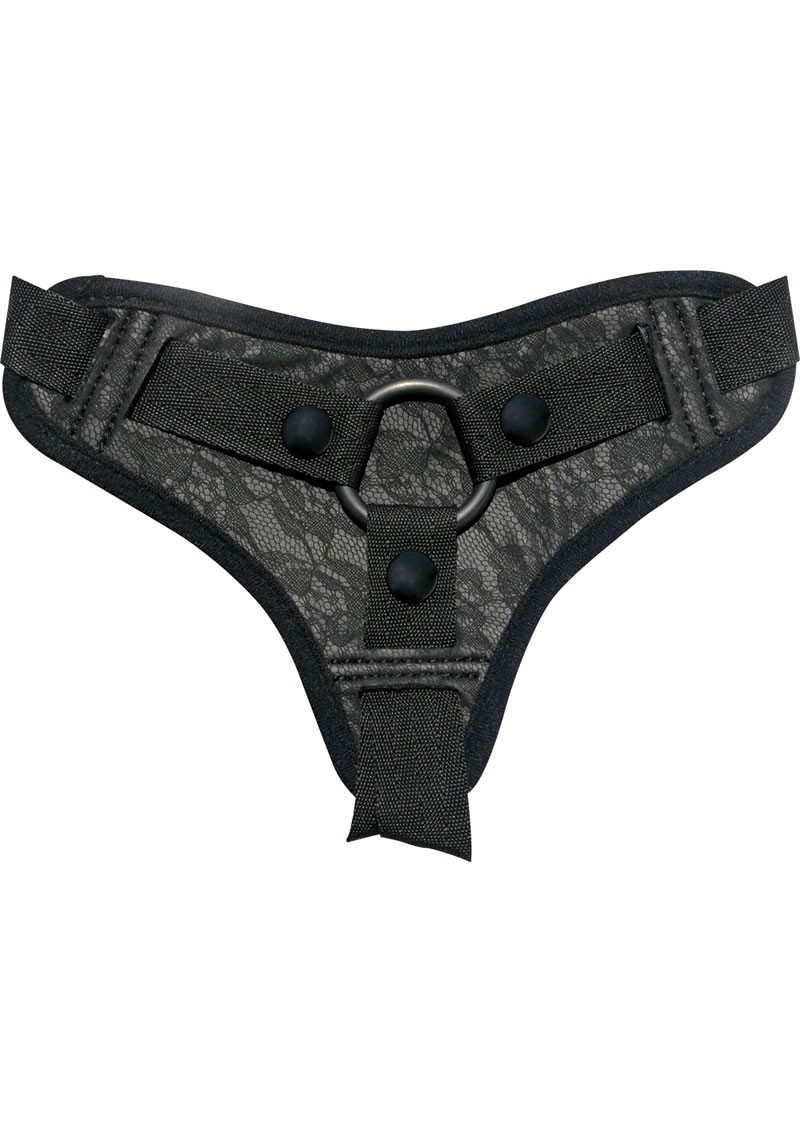 The velvety, fine lace fabric of this strap-on is part of the pleasure process as it comfortably hugs your contours while keeping your toy securely in place.