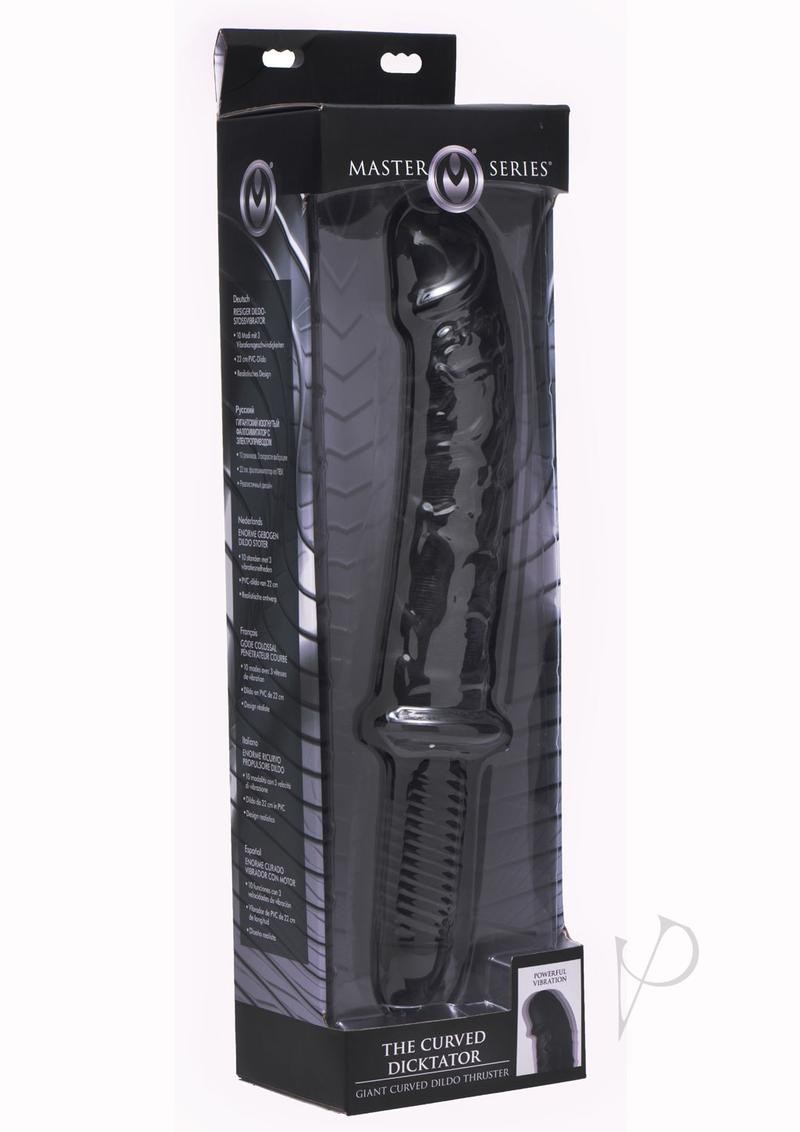 Long, thick, and veiny, the Curved Dictator is designed to hit all the right spots! This extreme thrusting shaft is shaped just like an actual penis, with a slight curve at the bulbous head and even more bulging details to massage you on the inside with every thrust. With a mighty 8.75 inches of textured length, 3 intense vibration speeds, and 10 unique patterns of pulsation, you have plenty to work with! Take hold of the grooved, easy-to-grip handle and aim for your favorite hole. Use on your own or with a partner for an intense penetrative experience! Compatible with both silicone and water-based lubricants.