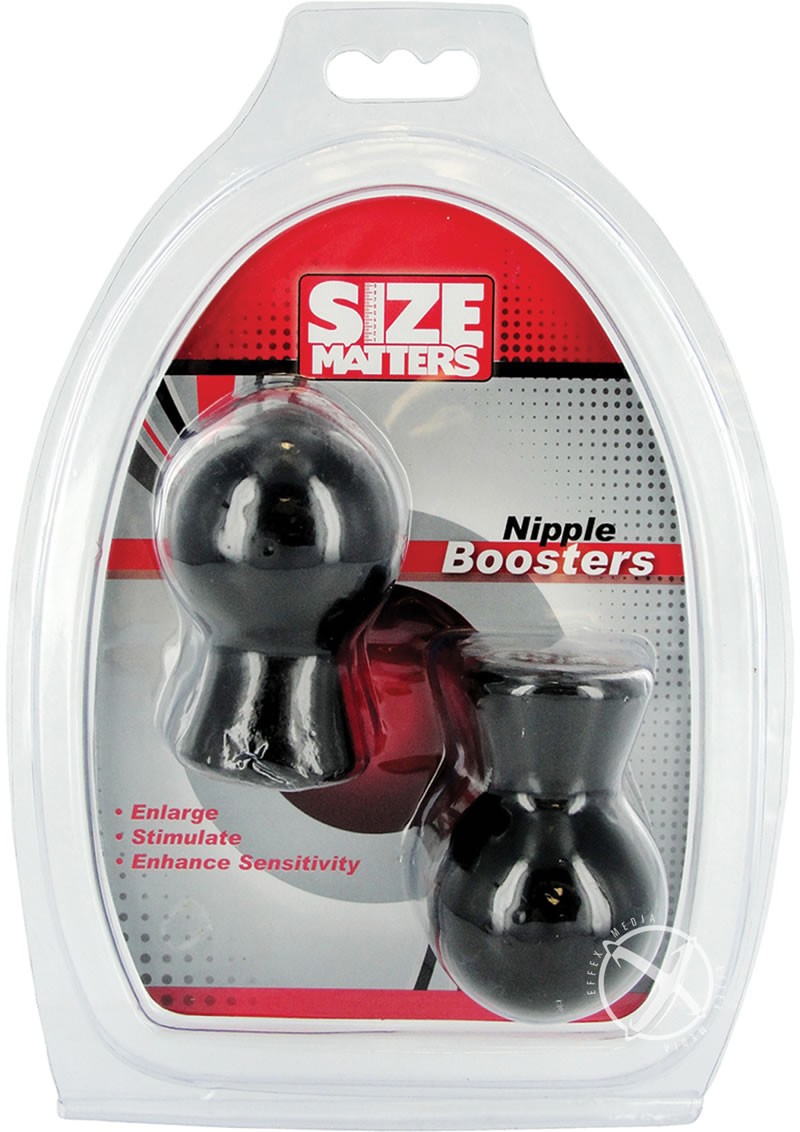 The Size Matters Nipple Boosters can enlarge and stimulate your nipples. Suction and increased blood flow to the nipples increases sensitivity and pleasure. Simply place them over the nipples and squeeze the bulb. The nipple suckers will create a vacuum sensation when you release your fingers. After you release the nipple boosters they will stay in place and you may enjoy hands free stimulation!