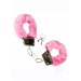 Metal faux fur covered handcuffs with safety release. Soft and comfortable removable faux fur. 2 keys included.