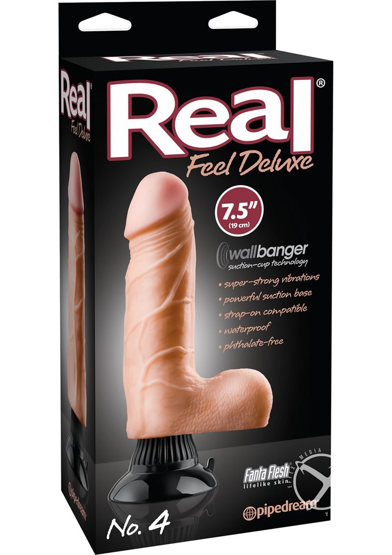 Enjoy the "Real Feel" of velvet-soft, lifelike skin with this incredibly realistic vibe. Meticulously designed with a pronounced head, bulging veins, and free-hanging balls, the super-lifelike shapes, textures, and colors of this vibe truly look and feel like the real thing! Made with phthalate-free Fanta Flesh, this squishy material mimics the softness of real skin and is completely body-safe.