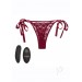 Remote control and rechargeable – use alone or with a partner! Petite, curved, body forming stimulator fits comfortably into lace thong. Stretch-to-fit lace thong with adjustable satin ties and secret pocket for secure stimulator placement. Machine washable lace thong. 12 intense functions of vibration, pulsation and escalation. Waterproof Silicone stimulator may be used independently of remote. State-of-the-art memory chip resumes on last function used. Easy push-button control – hold for 3 seconds to turn on or off. Extended 32.75’/10 m range. RED certificate included. USB rechargeable (stimulator and remote) – dual charging cord included. Complete charge in 1 hour. Runs for 40 minutes on high speed and 55 minutes on low speed.