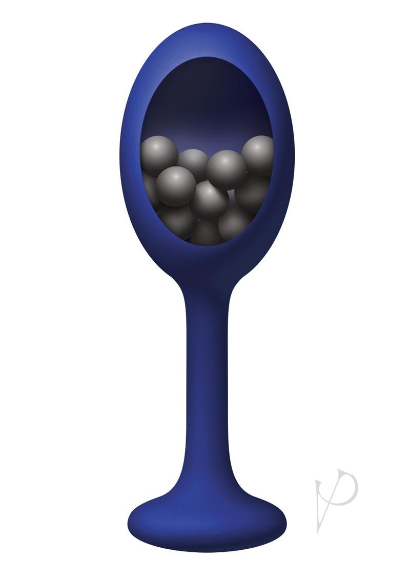 Encased inside a smooth silicone plug with a flared cherry-stem tail, free-flowing metal beads clash to produce intense stimulation and a unique experience! Available in red, blue, and black. Suitable with all lubricants.