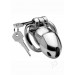 Keep your slave confined all day and all night! This chastity device has a uniquely compact design, with an internal locking system that prevents a bulky appearance under clothing. Insert the key into the brass keyhole and turn to straighten out the lock. The lock can then be inserted into or removed from the hinge. With another twist of the key, your slave will be helplessly trapped until you decide to show mercy! Great for sissification, cuckolding, and slaves. Made of stainless steel, this cage is non-porous and phthalate-free.