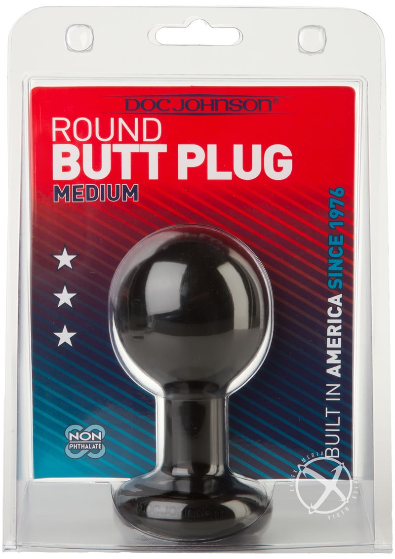 A more well-rounded butt plug, this 4" Round Plug has a uniform spherical head that stretches you out effectively, fills you up fully with 7" of girth, and hits all of your sweet spots. The medium size is moderate and manageable-- and perfect for experienced anal players -- while the body is tapered with a wide safety base. Made from our slick PVC, this plug is firm yet flexible. Available in Black and White. Proudly Made in America