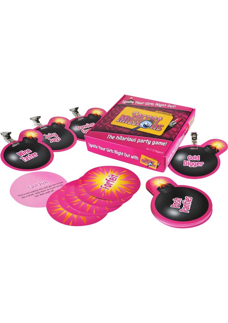 As host, choose the most appropriate name tag for each guest from the twelve Party themed badges. On the reverse of each tag is their Secret Mission, known only to them. It may be naughty, it could be cheeky, but it's sure to be downright hilarious.