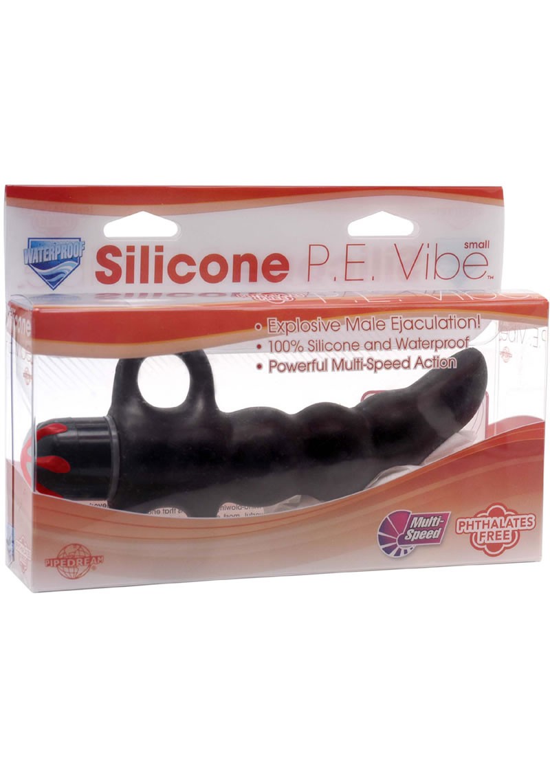 This is no ordinary prostate exam! The Silicone P.E. Vibe is the ultimate device for men who want to take pleasure to the next level. The soft silicone massager is ribbed and cleverly curved to stimulate a man's prostate, delivering mind-blowing sensations that end with incredible climaxes. Experience the most intense, most powerful, most explosive ejaculations ever! The thin, tapered tip makes insertion easy, and the ringed handles ensure safe removal. Choose a speed that's right for you and enjoy a whole new realm of pleasure. Use plenty of Moist lube for an extra wet, extra wild encounter. Cleanup is a snap using Toy Cleaner and warm water. Works great in the shower, spa, or bath.