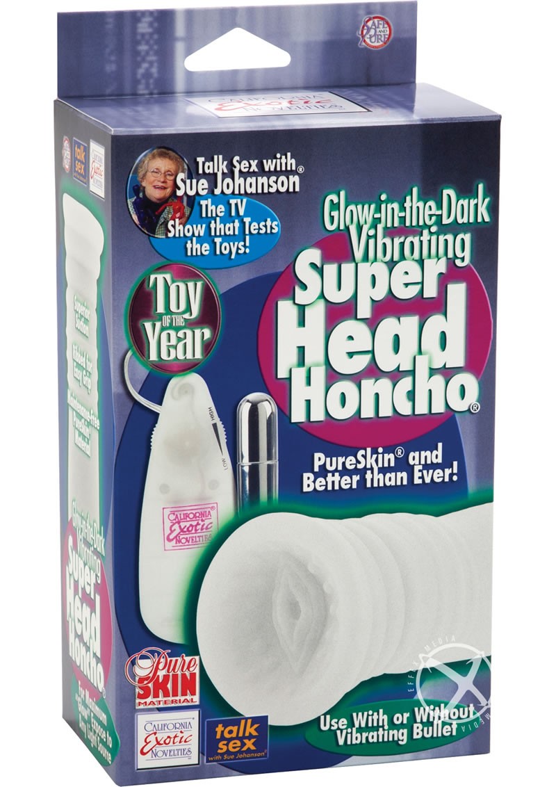 The award winning Head Honcho now vibrates and glows-in-the-dark. Use with or without multi-speed vibrating bullet.