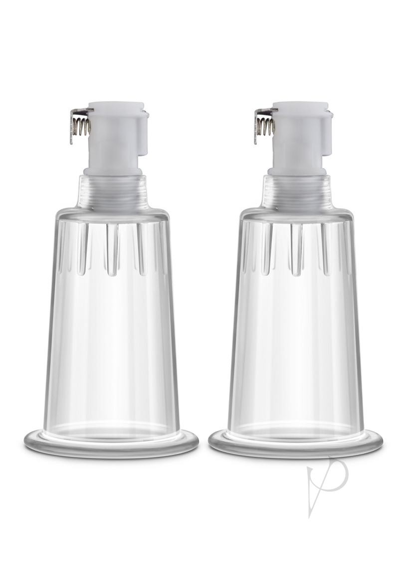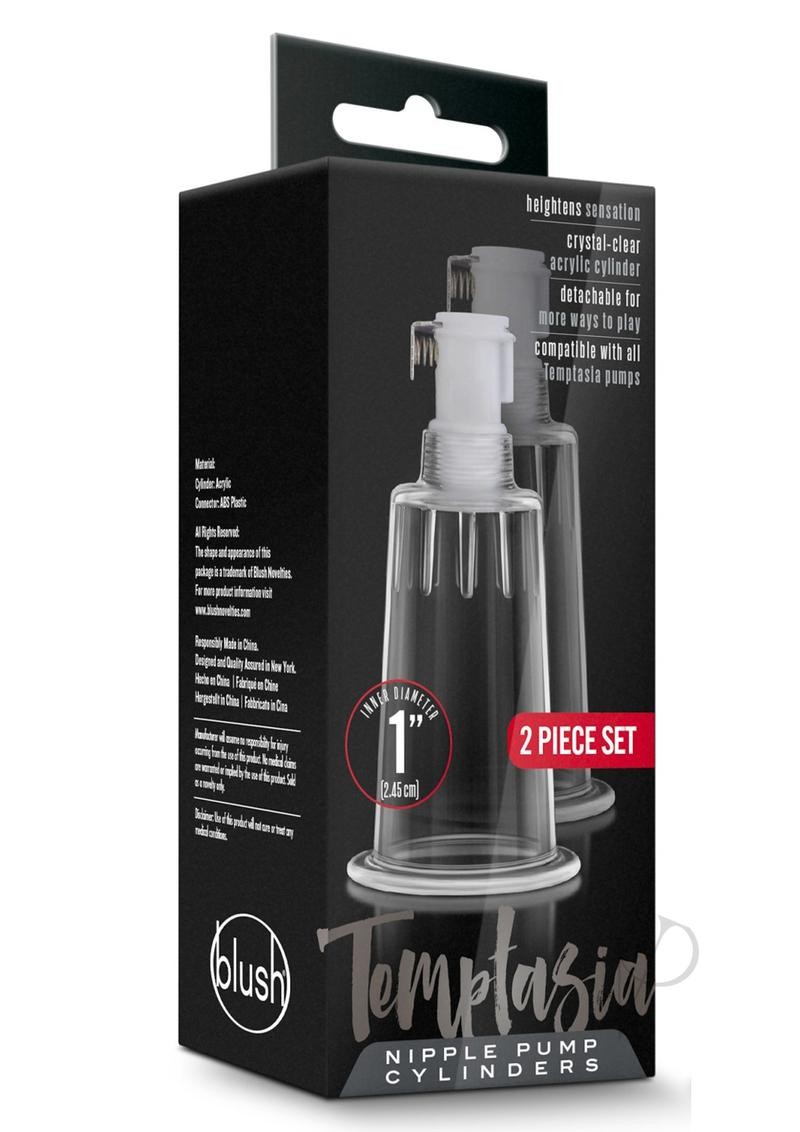 Temptasia Nipple Pumping Cylinders are compatible and interchangeable with other Temptasia pumps and accessories. In use with a quality pump, they'll bring temporary engorgement and heightened sensitivity to your nipples. The cylinders are crystal-clear for easy viewing, plus detachable if you are seeking to hold the suction while you play. These cylinders, 1" inner diameter, are a larger-than-average size. Made of body safe acrylic, Temptasia Cylinders are easy to use and easy to clean.