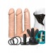 Your perfect strap-on experience is on lock with Doc Johnson’s deluxe line of full-service Vac-U-Lock Deluxe Sets. The Vac-U-Lock Dual Density ULTRASKYN Set is a solid investment for upgrading or beginning your strap-on accessories collection, offering multiple options in one box via a complete harness with removable O-rings, a 7-function rechargeable vibrating Vac-U Plug with remote, three ULTRASKYN attachments, and a bottle of Mood water-based lube. These lifelike dual density attachments — an 8” Realistic Dong, a 7” Cock, and the bestselling 7” Slim Cock — warm to body temperature with use and feature a soft exterior that gives way to a firm inner core, recreating the feel of a real erect penis. Attachments can be used with the harness, the included 360° Swivel Suction Cup, or any other accessory or harness in the line. The Vac-U-Lock Dual Density Starter Set also includes Doc Johnson Natural Toy Cleaner and ULTRASKYN Refresh Powder to properly and hygienically maintain your dual density ULTRASKYN attachments. Every product in the patented Vac-U-Lock system is designed to help you create any strap-on or toy you’re in the mood for, and it’s as simple as popping on the attachment of your choice.