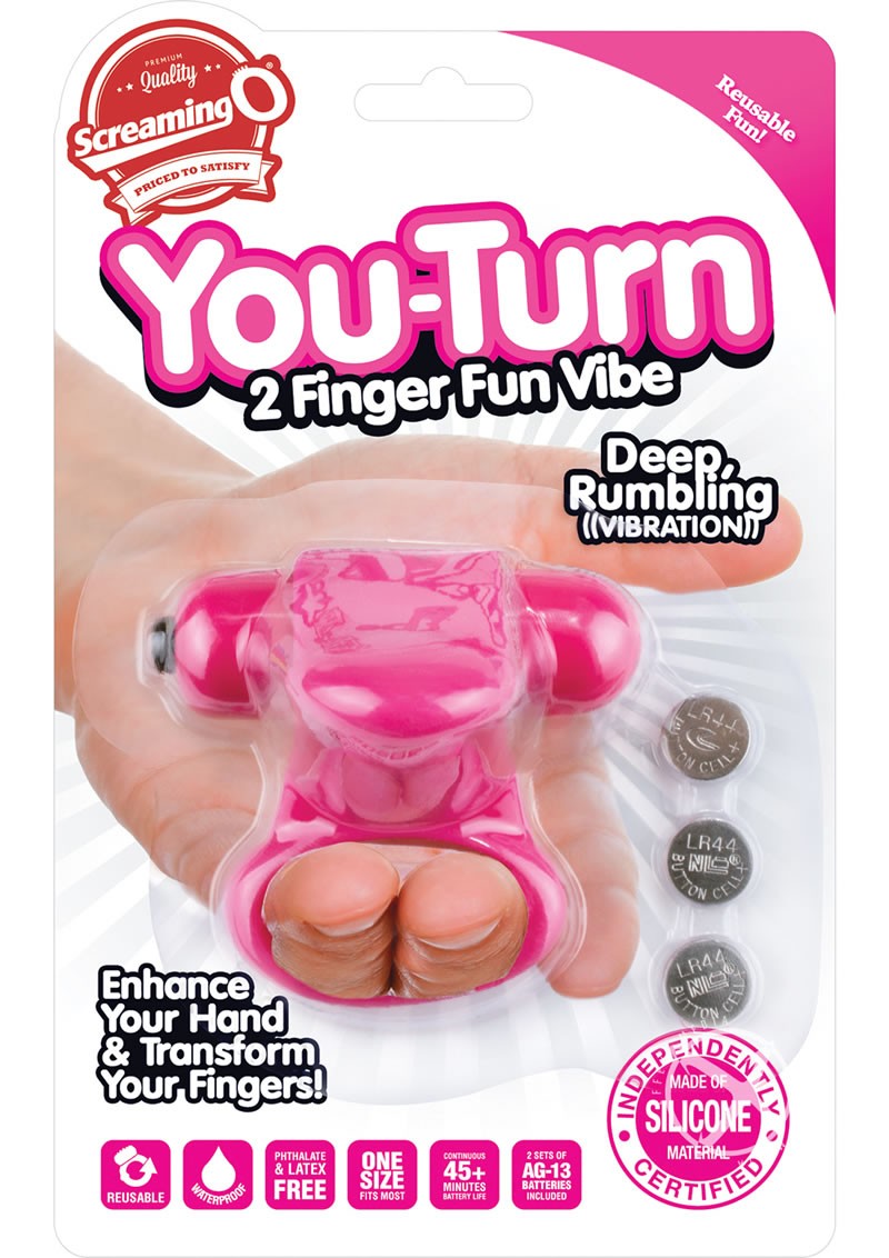 The You-Turn finger-fitted fun vibe enhances the signature "come hitter" G-spotting motion with deep, penetrating vibration for a uniquely intimate experience. Enhance your hand and intensify your fingers with rumbling vibration she can feel from the inside.